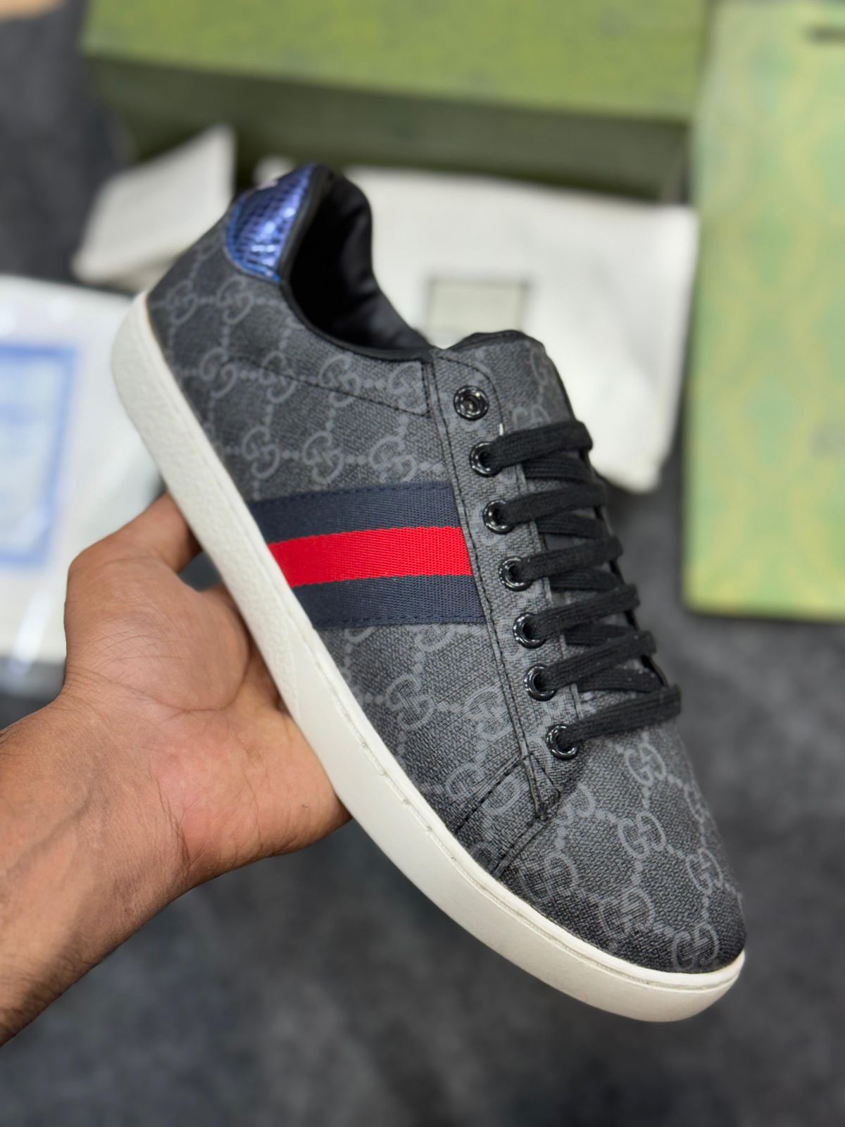 Classic luxury reimagined: these First Copy Gucci Ace Sneakers capture the iconic minimalist elegance and signature accents of the original Gucci Ace trainers, tailored for men who want designer-inspired style at a budget-friendly price.