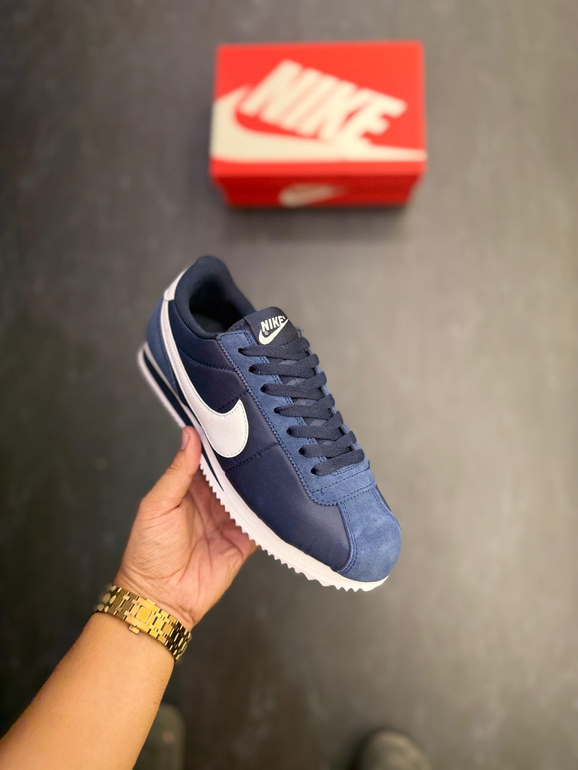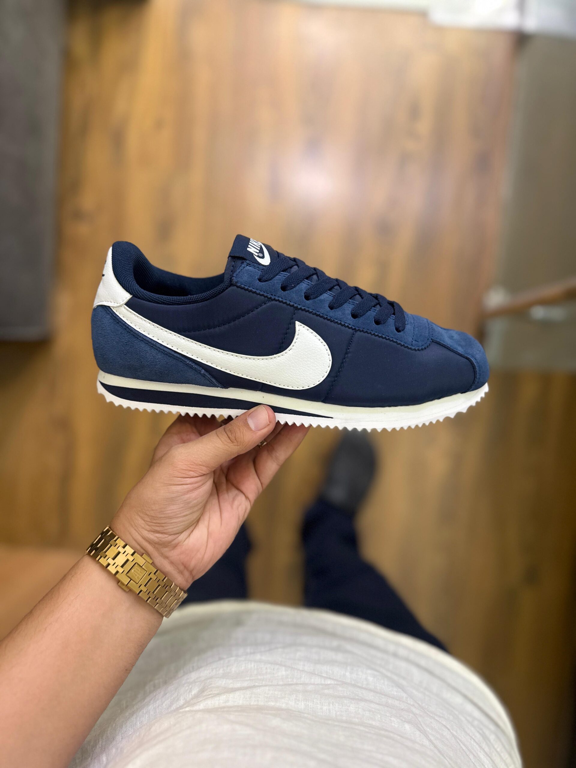 The First Copy Nike Cortez Nylon Navy for Men brings back the legendary retro running silhouette in a sleek and versatile design. With its lightweight nylon build and vintage-inspired detailing, this pair offers both everyday comfort and timeless streetwear style.